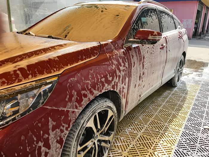 第二步:使用泡沫覆盖全车,天真的以为真的是按时间计算,导致泡沫喷多了,然而。。。