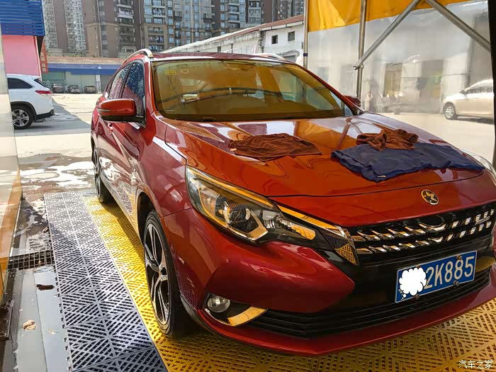 第四步:冲洗干净,使用自带的毛巾擦拭车漆,因为该地点设置的位置问题,车身能够晒到太阳,所以速度要快,避免水迹干了,影响清洗效果。