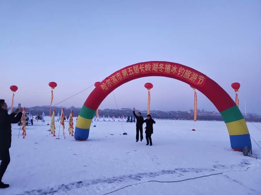 哈尔滨市第五届长岭湖冬捕冰钓旅游节,这是在这里拍照的南方小伙