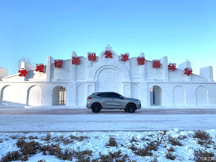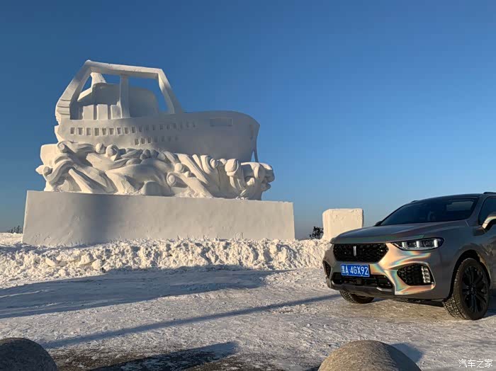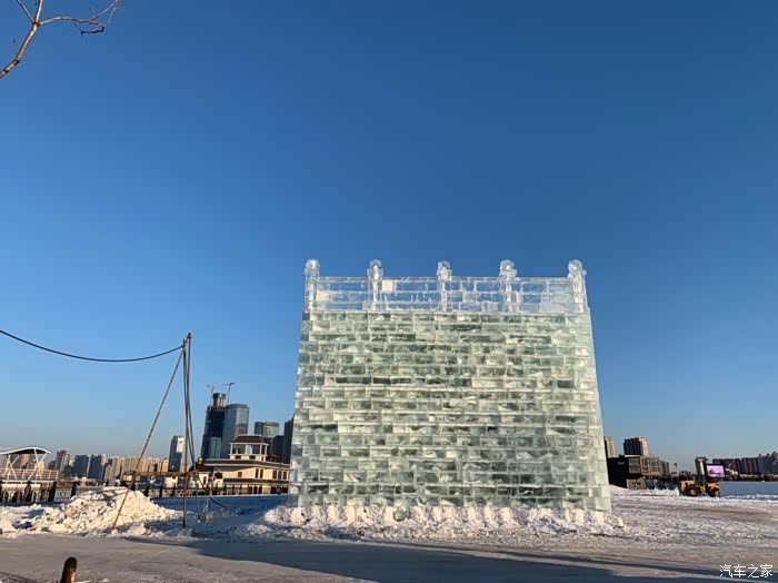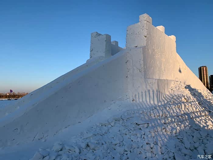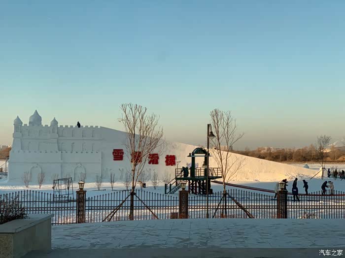 刚一到入口就看到远处巨型雪雕成的大滑梯!