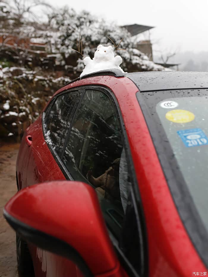 在小5的车顶媳妇弄个底座,我弄个身体,媳妇再弄个头部,我弄两个眼睛。虽然冷,却是乐趣多多,其乐融融。