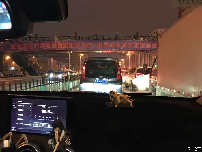 再返家途中老婆的视野,一路堵车啊,毕竟路面结冰谨慎慢行是正确的选择