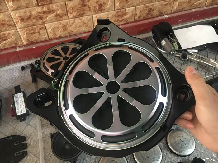 这个就是脚底下的低音喇叭,左右各有一个,原车只有副驾驶有一个很次的,主驾驶是一个空壳子,奔驰真的太抠