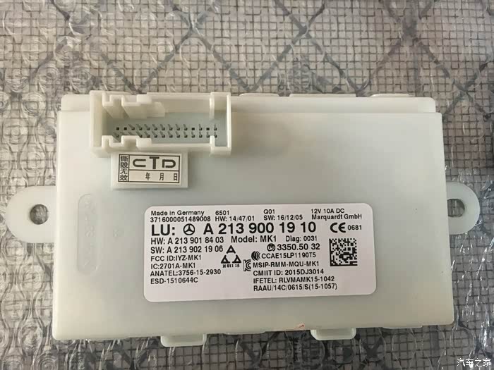 加装无钥匙进入需要把原车的这个模块换成高配的,原车的那么模块不支持这个功能,也就是这个模块使得咱们新E的无钥匙进入加装的价格比别的车贵很多。这东西听说市场上有副厂的,建议大家多观察,改装一定要改原厂的东西,不然出问题很麻烦,这是改装老手的忠告。
