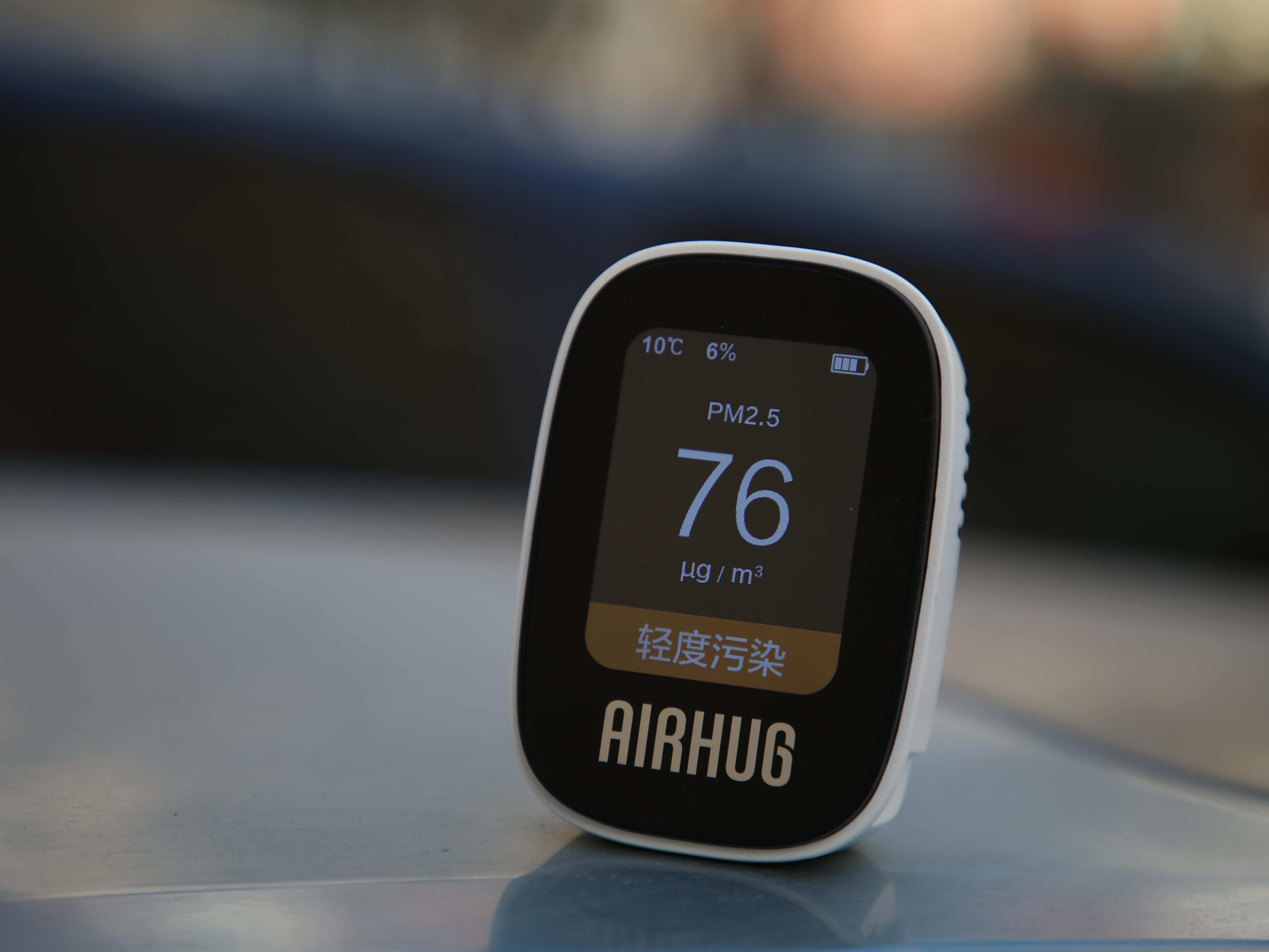 将空气质量检测仪放到车顶然后开启读出的PM2.5数值是76,虽然有些浮动,但并不是太大。