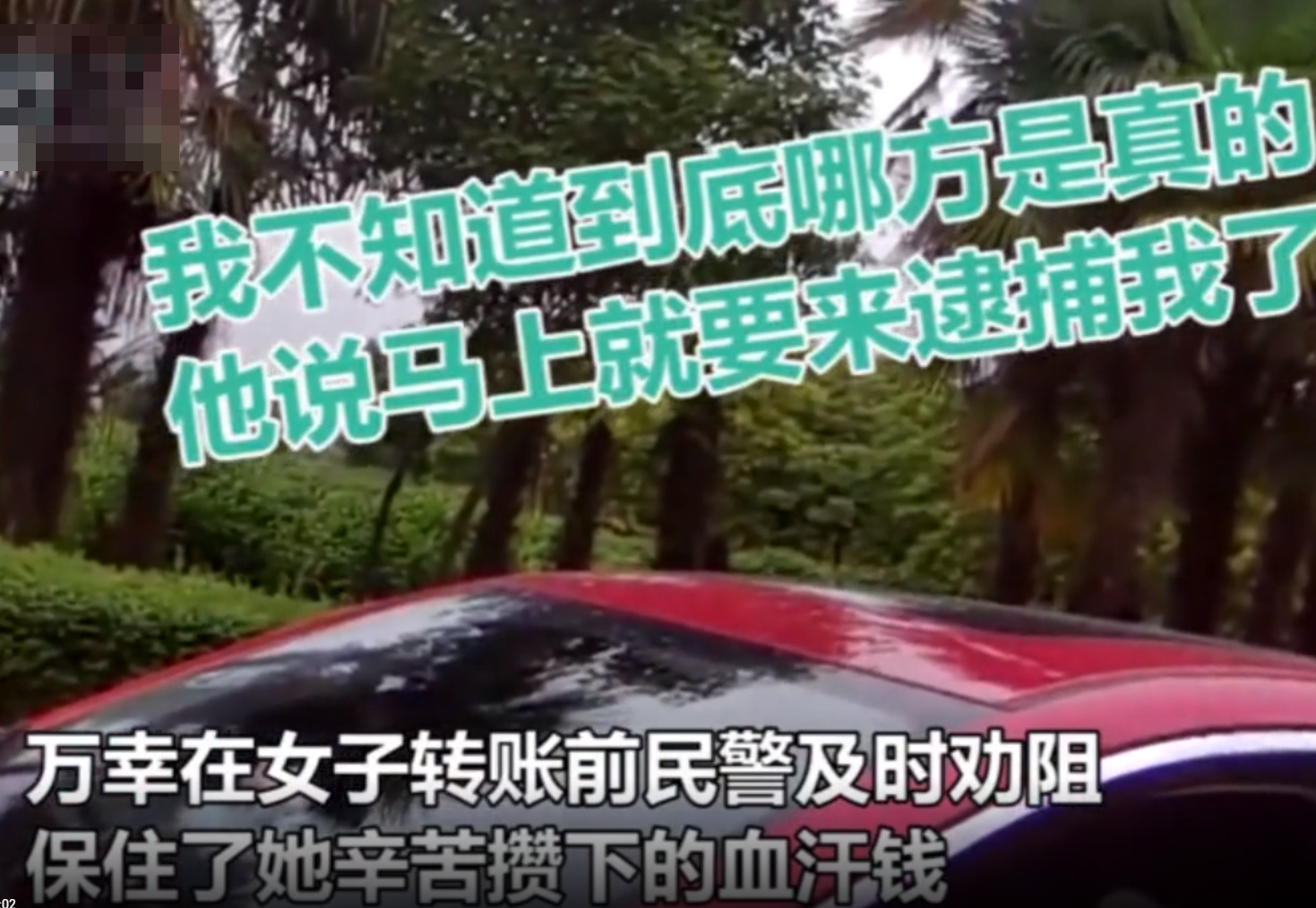 女子驶入一条死胡同才停车,民警上前焦急地敲打车窗:“不要转钱,你被骗了!赶紧下车!”。