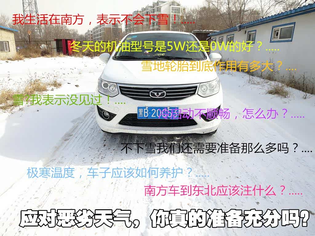 俗话说“人有旦夕祸福,天有不测风云”农民朋友们很注重天气对庄稼收成的影响。而天气的好与坏与需要我们养车人绝对的重视。虽然下雪下雨低温高温你都可以在车内保持舒适的状态,但是试想如果车子罢工,你还能那么舒坦的用车吗?所以在恶劣天气的情况下懂得用车养车是非常关键的,也是验证你是否是一名合格老司机的关键。而生活在东北30多年的我,也深感最近这几年天气变化确实有些无常,该下雪的时候不下雪、该下雨的时候不下雨。真有种环境转换的感觉。就拿今年的冬天来说吧!一冬天我记忆中只有2次有规模的降雪,之后就每天都是万里无云的天气,确实让我这个养车人对于车的养护有些掉以轻心了。而就在昨日,一场大雪降下来。早上一看天气预报,气温急降10多度,已经快开春的季节,又变成了数九寒天的景象。最为明显的就是车子有些耍小脾气了。比如启动不顺畅、驾驶中打滑等等一系列问题。所以今天我认为有必要跟大家聊聊恶劣天气下的用车方式,我的思路就是一定要打提前量。在合适的季节就要按照最严苛的标准去养车,做到随时都能以防万一吧!我大致将极寒恶劣天气的用车分为以下几大块跟大家聊一聊: