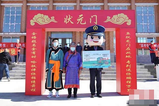 这辆列车已经开行19年,往返送运考生及家长达3.4万余人次,2019年开始在站前广场搭设“状元门”,这成了大杨树高考学生每年出发前纷纷打卡拍照的网红门。