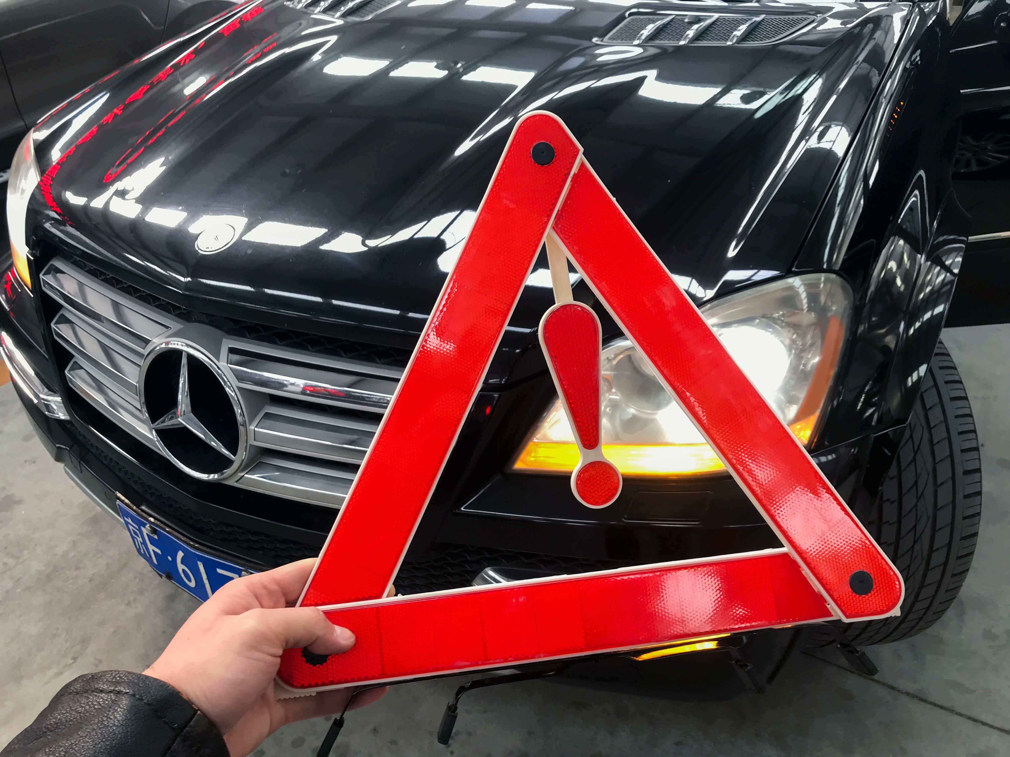 另一个问题是这种老款的三角牌已经不符合规范了,也不合格,好在是这条不影响上线检测,但要求必须购买新的三角牌补拍外观才能完成检测手续。