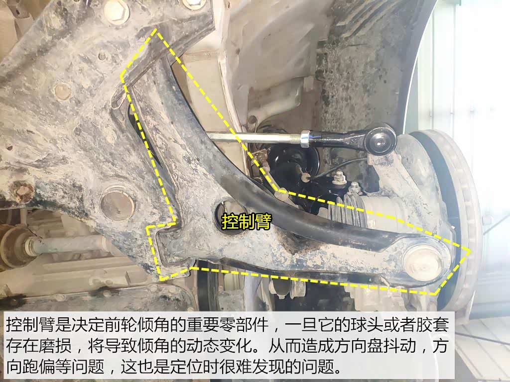 副车架是固定状态,但转向角是左右转动的,所以在连接处都会设计有球头。这个球头是车轮倾角变化的罪魁祸首之一,一旦它出现磨损产生间隙以后。定位时参数都正常,但行驶中球头晃动导致倾角数值波动性变化,从而造成跑偏问题。