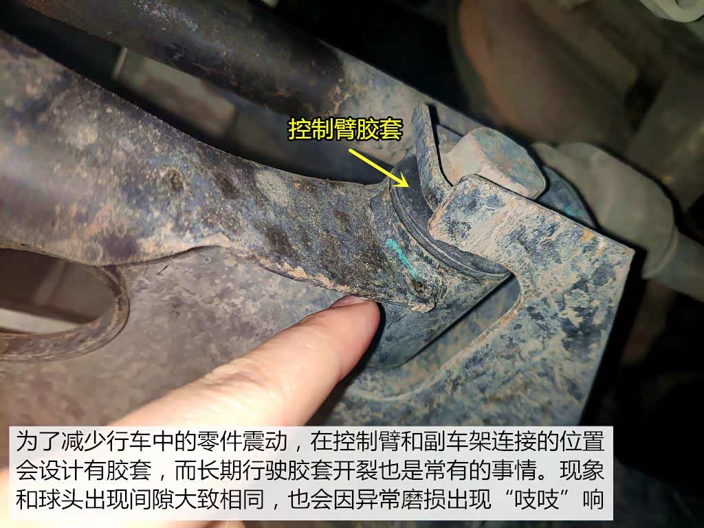 而对于我们行车中前悬架出现“吱吱”的胶套摩擦异响,我们可以对控制臂胶套喷涂润滑剂来解决。这也是最简单最有效的方法。