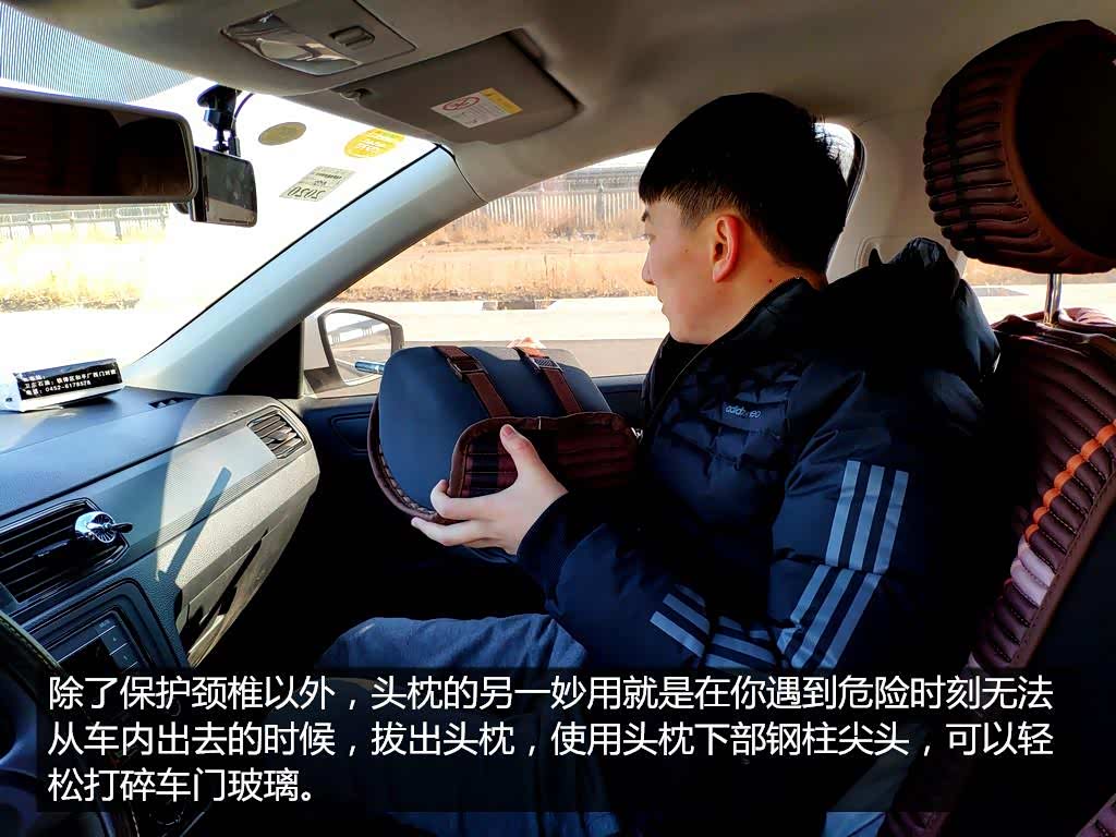 现代的汽车玻璃都采用钢化玻璃制作,其平面强度极大。如果使用钝器敲击是无法顺利击碎的。在你遇到危险想要逃出车外,玻璃将是你最大的屏障。此时可以将头枕拔出,使用头枕下部的支撑钢棍头部对玻璃进行敲击,由于是锥形设计,将很容易将钢化玻璃击碎。