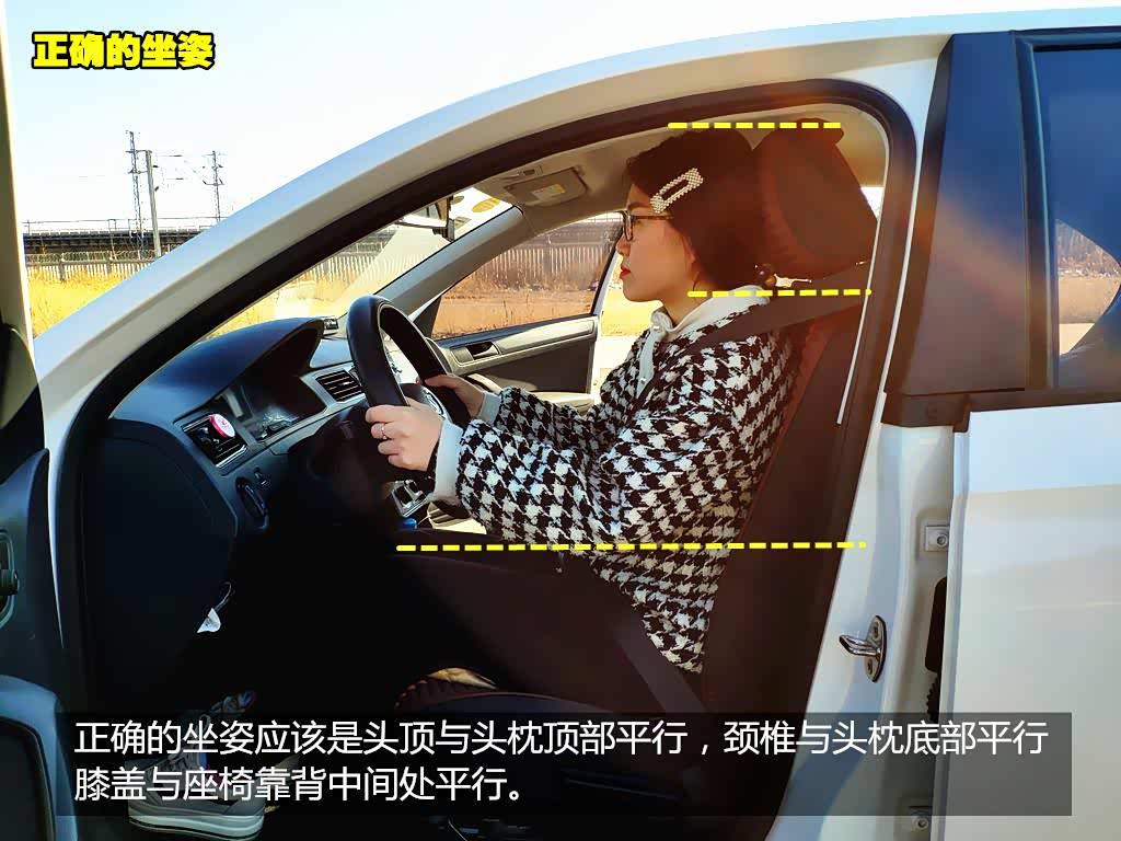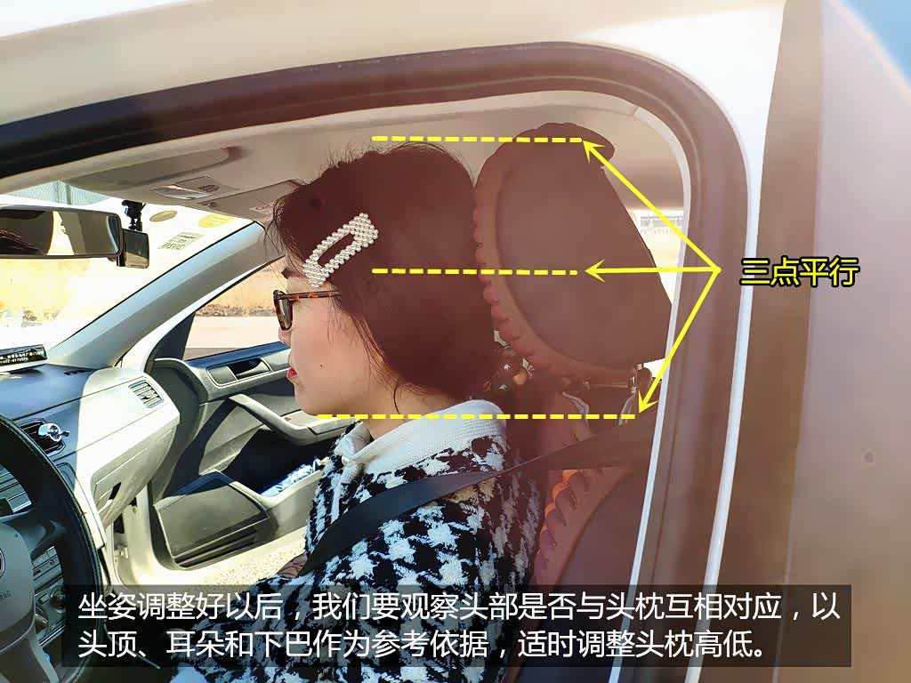 首先我们进入车内以后要以正确的座椅为第一步,之后我们就要观察头部、颈椎、背部与座椅头枕的相对位置是否平行。