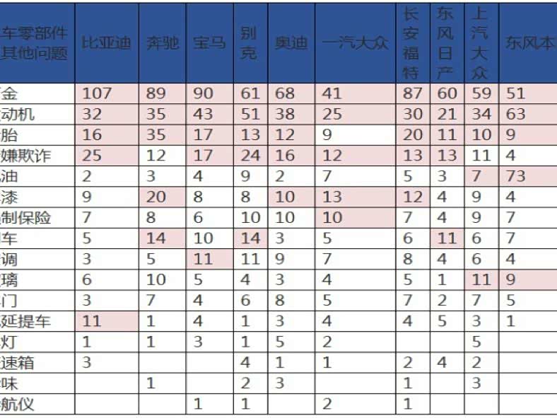 从排行榜上可以看出,上榜的车企在2018年都是麻烦不断,比亚迪售后服务问题占比最大,凸显比亚迪在售后体系建设上存在一定的问题。奔驰,特别是奔驰E级,2018年更是麻烦不断,E级断轴的事故越来越多,同时也被质检总局开始了断轴线索的召回。宝马漏机油自燃问题依旧。别克分体轴断轴召回事件余波未了。长安福特销量接近腰斩,然而投诉量还是高居不下。日产cvt故障等等,不说大众的双离合老大难问题。前十的车企投诉基本都属于旧问题,也就是顽疾无法解决。