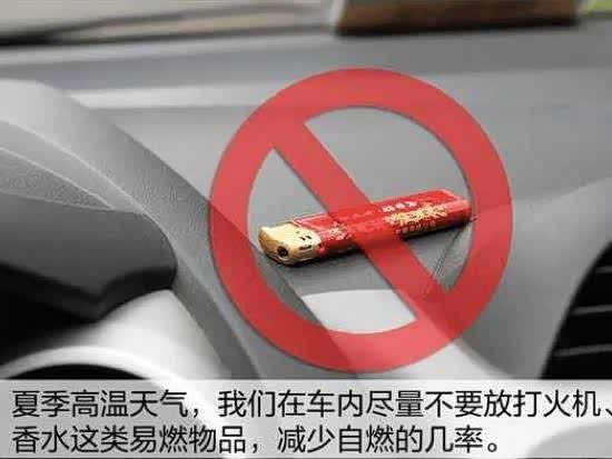 像易燃易爆的物品很多时候是引起自燃的罪魁祸首,所以在车内一定不要放这些东西。常见的东西就是,打火机,火柴,清洗剂,清新剂,酒类,充电宝,烟花爆竹等。