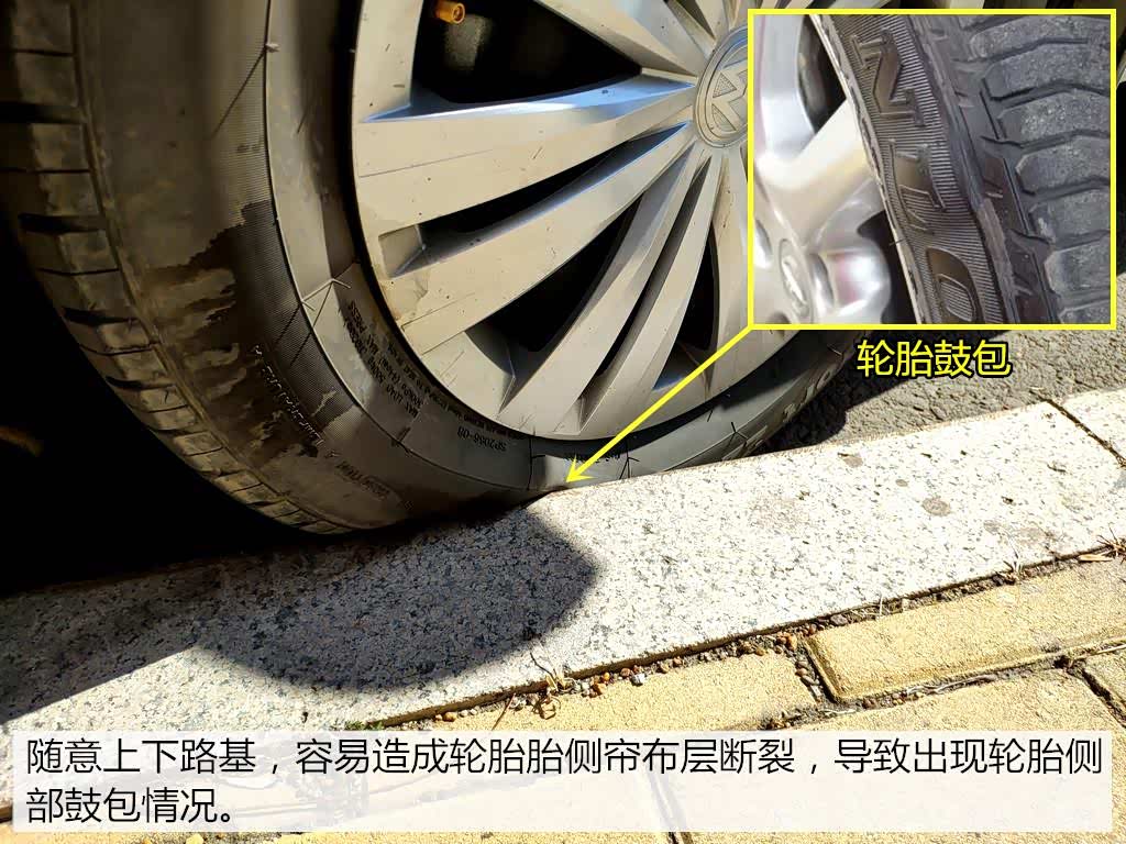 随意上下路基在车身重量的挤压下,轮胎会出现压扁情况,一旦速度较高,很可能导致轮胎帘布层断裂,从而出现轮胎侧部鼓包情况。所以在遇到较高路基的情况下,我们要避免随意上下。尤其是高宽比较小的轮胎。