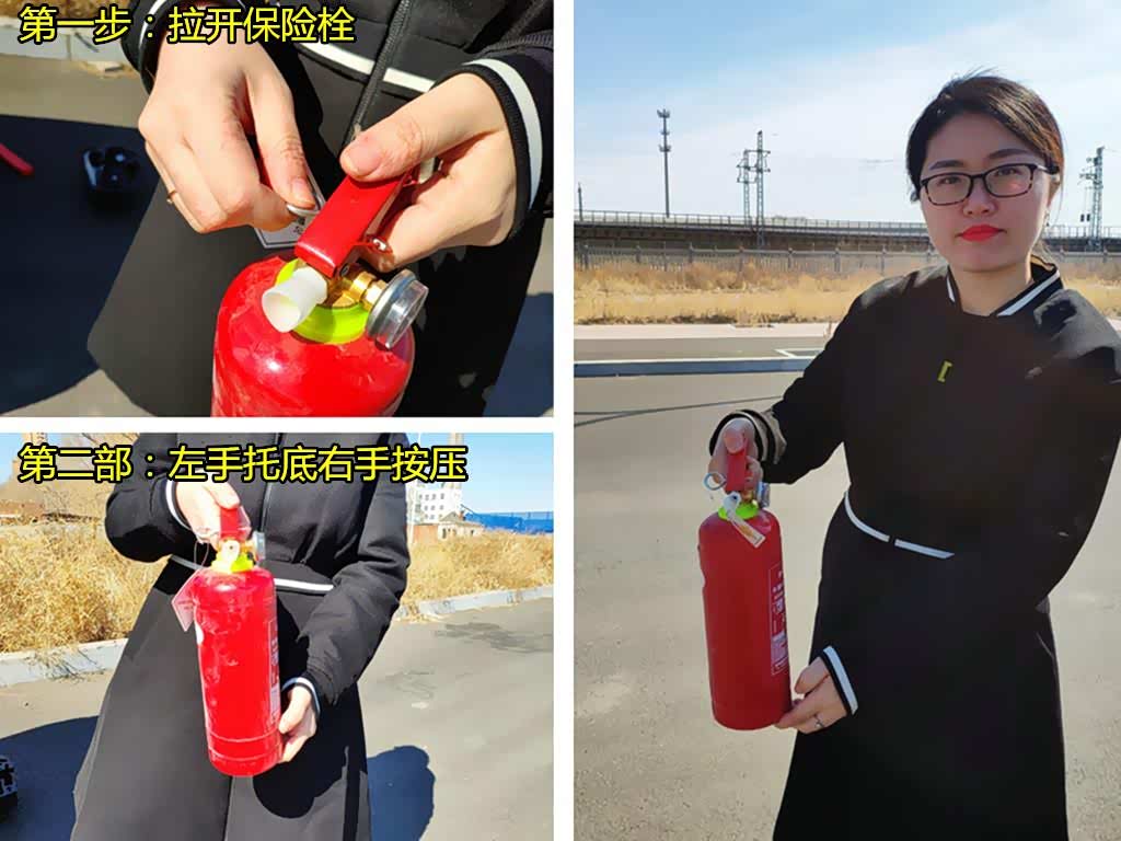 第一步:晃动灭火器数次,让内部灭火介质均匀。
