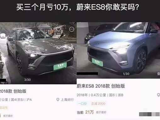 然后就是在网上出现的这一张蔚来ES8二手车的图片,买车三个月亏掉十多万。蔚来es8是一款中大型SUV,该款车子的指导价格应该在45万左右。然而二手车网站上报出的价格仅有20多万。不得不让人感慨未来汽车的保值率。并且有有朋友说,虽然有价无市。
