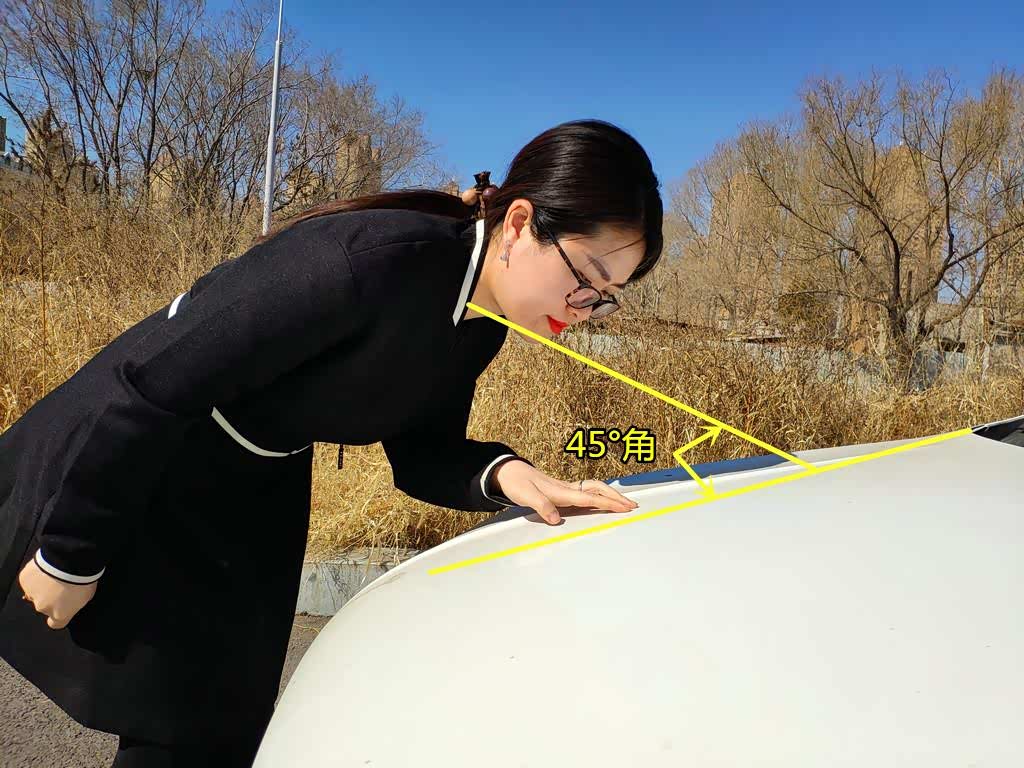 我们在阳光充足的环境下,眼睛与车漆保持45°角。观察漆面是否存在沙眼、橘纹等情况。