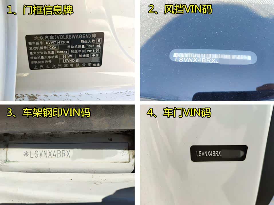 在车身本体、左前门框、风挡左下角、车门这几处设计有VIN码铭牌。在检验时我们要核对这些名牌上的VIN码是否全部一致。如果存在差异,尤其是风挡、车门、机盖、行李箱等部位的VIN码不一致,很可能该车使用过拆车零件进行过维修更换。