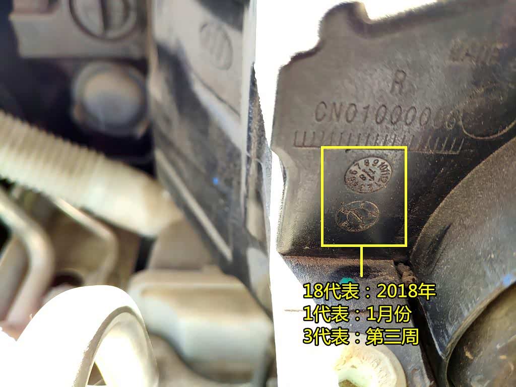 3、轮胎、蓄电池、大灯的生产日期也可以参考。