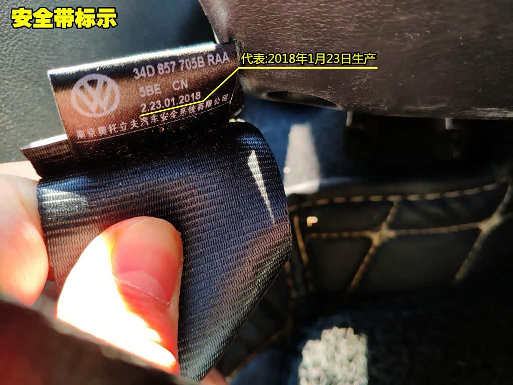 在车辆撞击过程中,安全带基本上都会报废,在维修时大多数车辆都需要更换新的安全带。在安全带的根部会有这种生产日期标签。如果你发现这台车的安全带生产日期与车辆生产日期不符合逻辑,就证明这台车很可能出现过大事故。