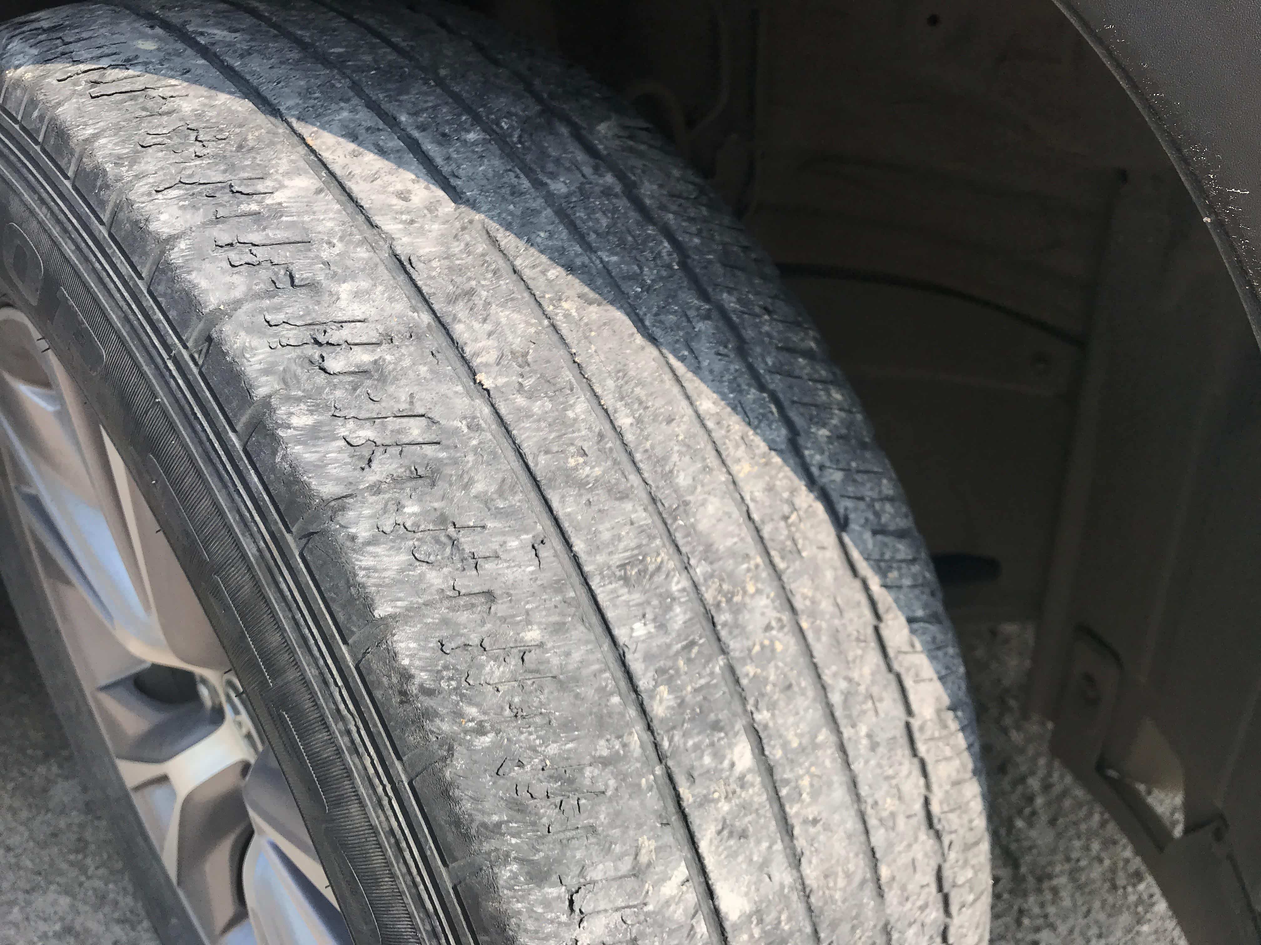 同事的汉兰达的轮胎我感觉还是没有及时做四轮定位以及四轮换位,为什么会一起发生呢?先说四轮定位,四轮定位在轮胎有异常磨损的时候就可以做,包治百病。