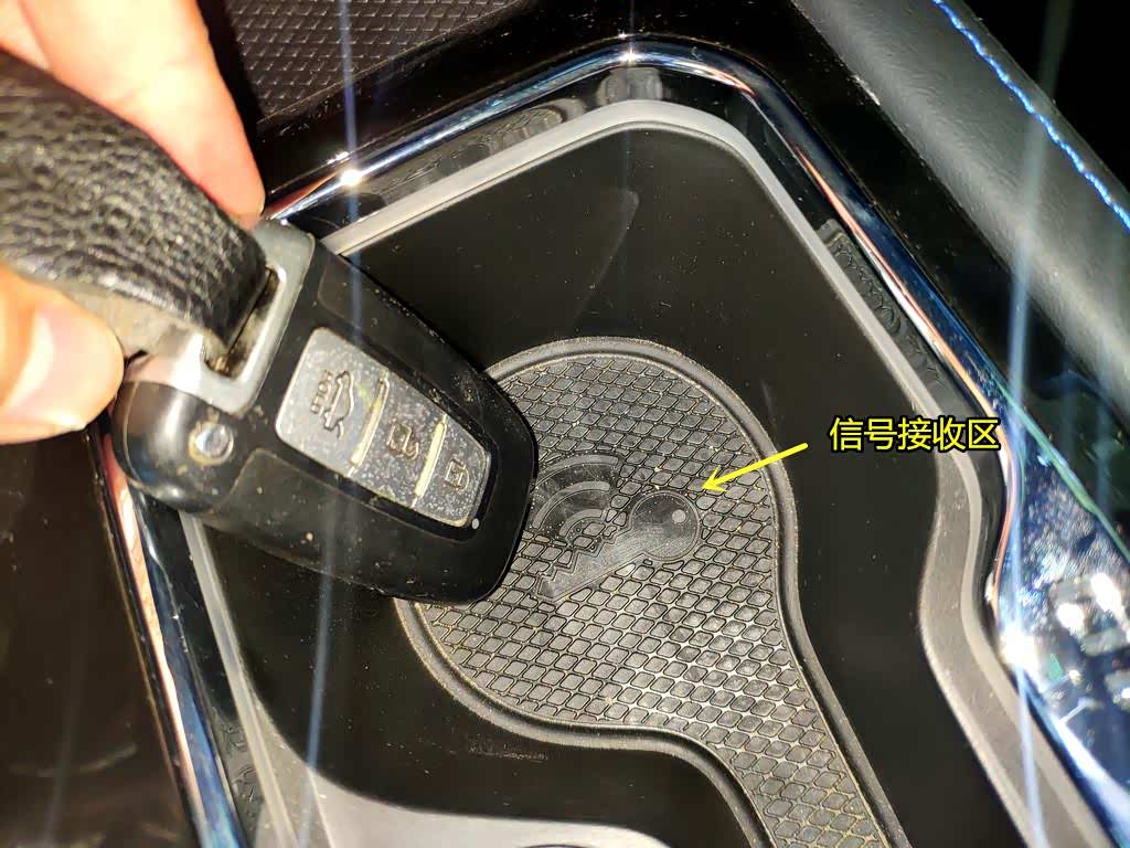 还有很多车型设计了专用的信号接收位置,从而应对遥控器没电情况。在遥控器没电时,将其放入这个指定位置即可。