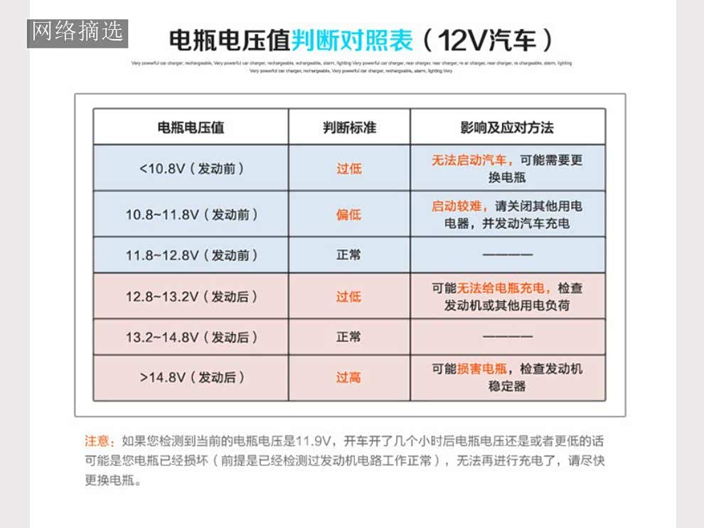 电瓶的维护标准,我们可以简单测试静置电压。最理想的状态是早上发动之前的测量比较准确。我这个测试只是作为一个参考。