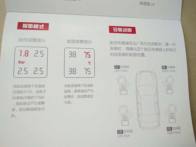 说明书上也重点提示传感器在出厂前已完成配对,安装时一定要按对应位置轮胎进行安装。避免监测数据不准。