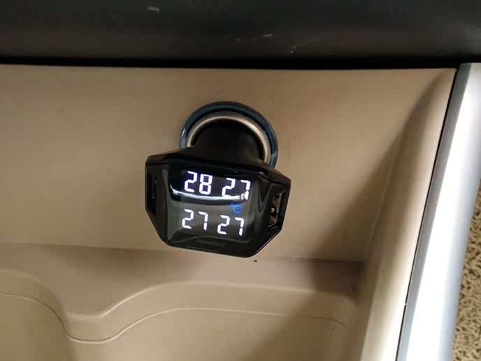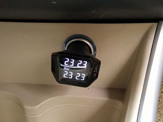 胎压监测显示器,精致小巧,可直接插在车载点烟器处取电,胎压传感器监测的数据通过无线传输到显示器上实时显示。