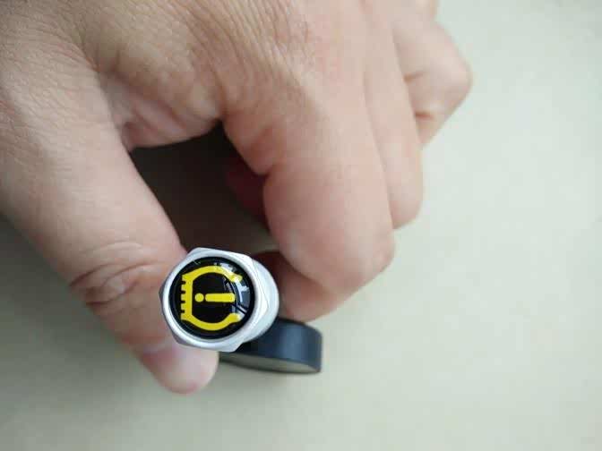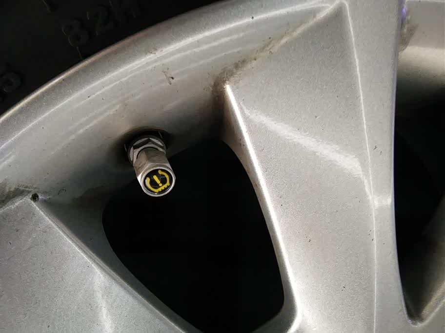内置胎压传感器上附带的气门芯帽上标有醒目的胎压监测标志。