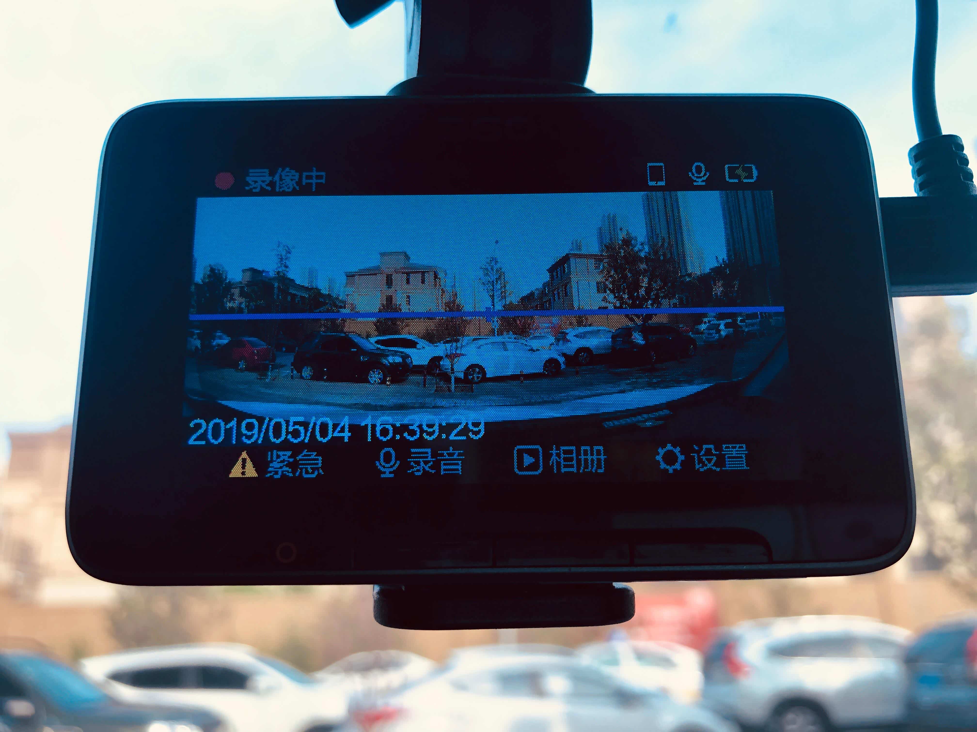 格式化后重新开始工作。其实记录仪还有挺多功能还没用到,很多功能都是很实用的,显示屏中间出现一横条,是设置了前车距离,如果距离较近会有提示,还有辅助变道模式,如果有危险都会提示。这个功能很强大哈。