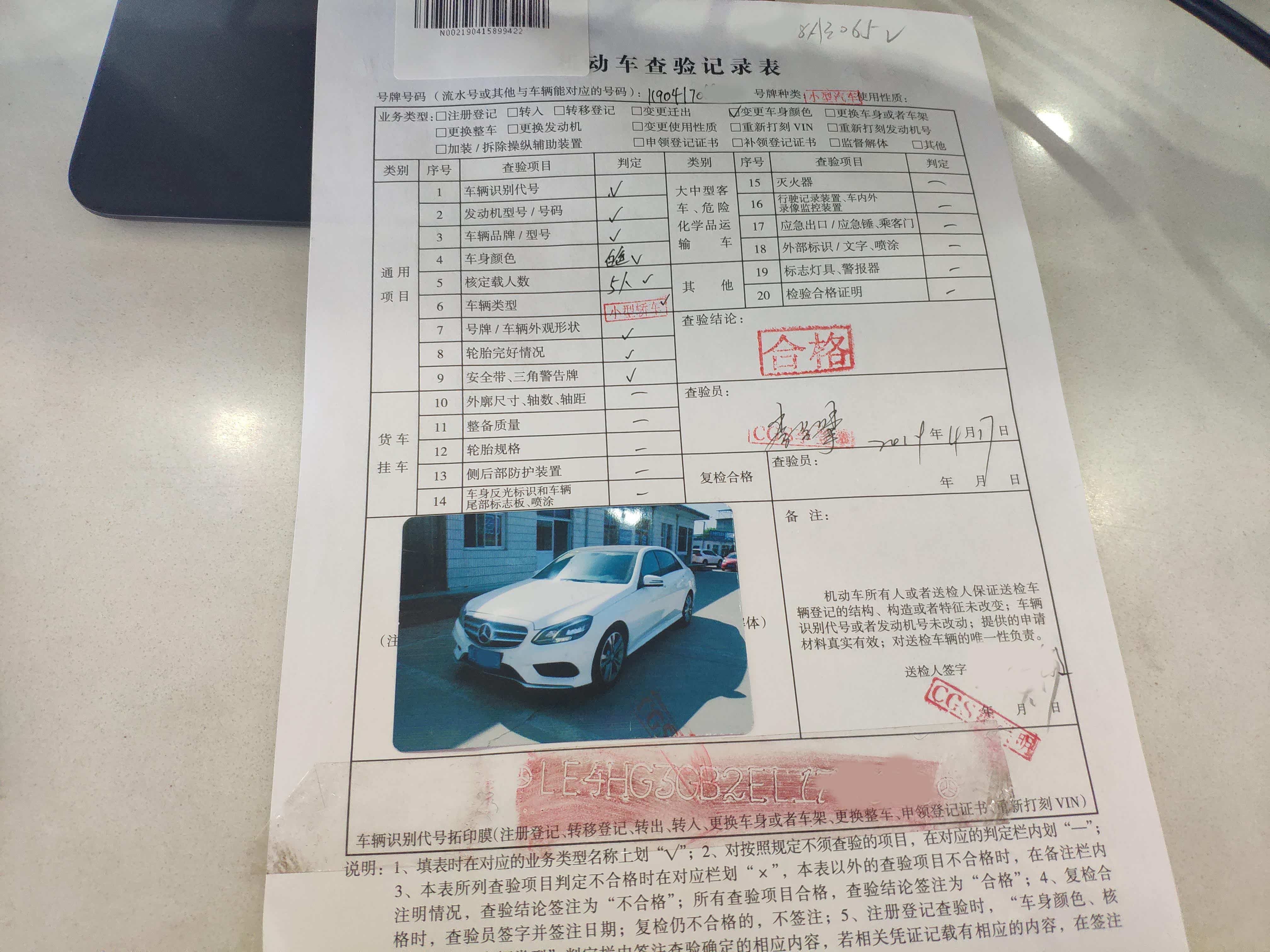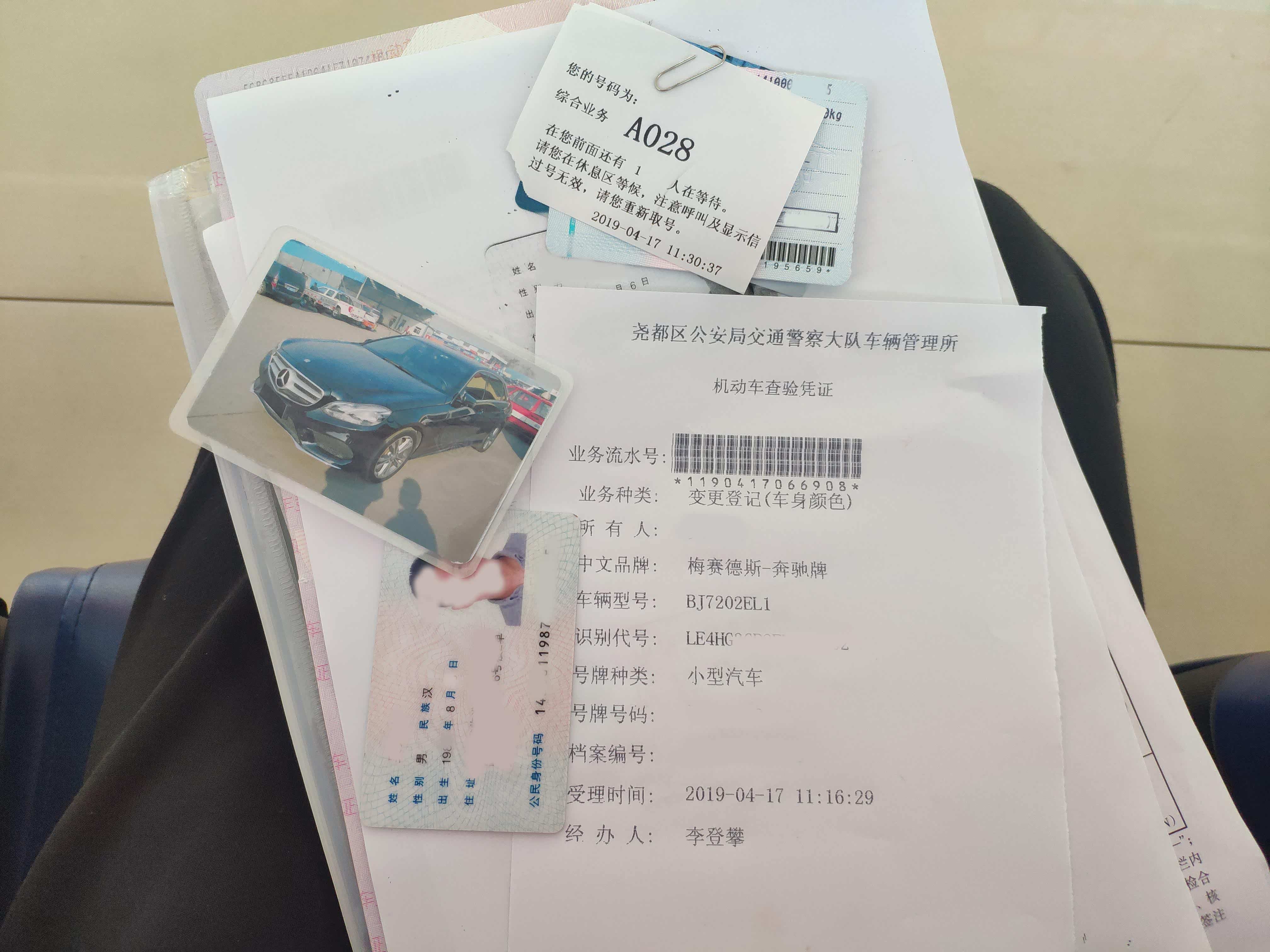 还需要对发动机进行拓(ta)号,这个字的正确读音应该是这样的,古代从碑文上拓贴之类的都是这个读音,拓号也是一个意思,不扯了,跑偏了。由于我这是第二次来做变更登记了,所以相比两年前还是有些不同的,两年前为我这辆奔驰拓号,他们就跟我收了30元,说是这车比别的车难拓,这一次居然是免费的,感谢政府!