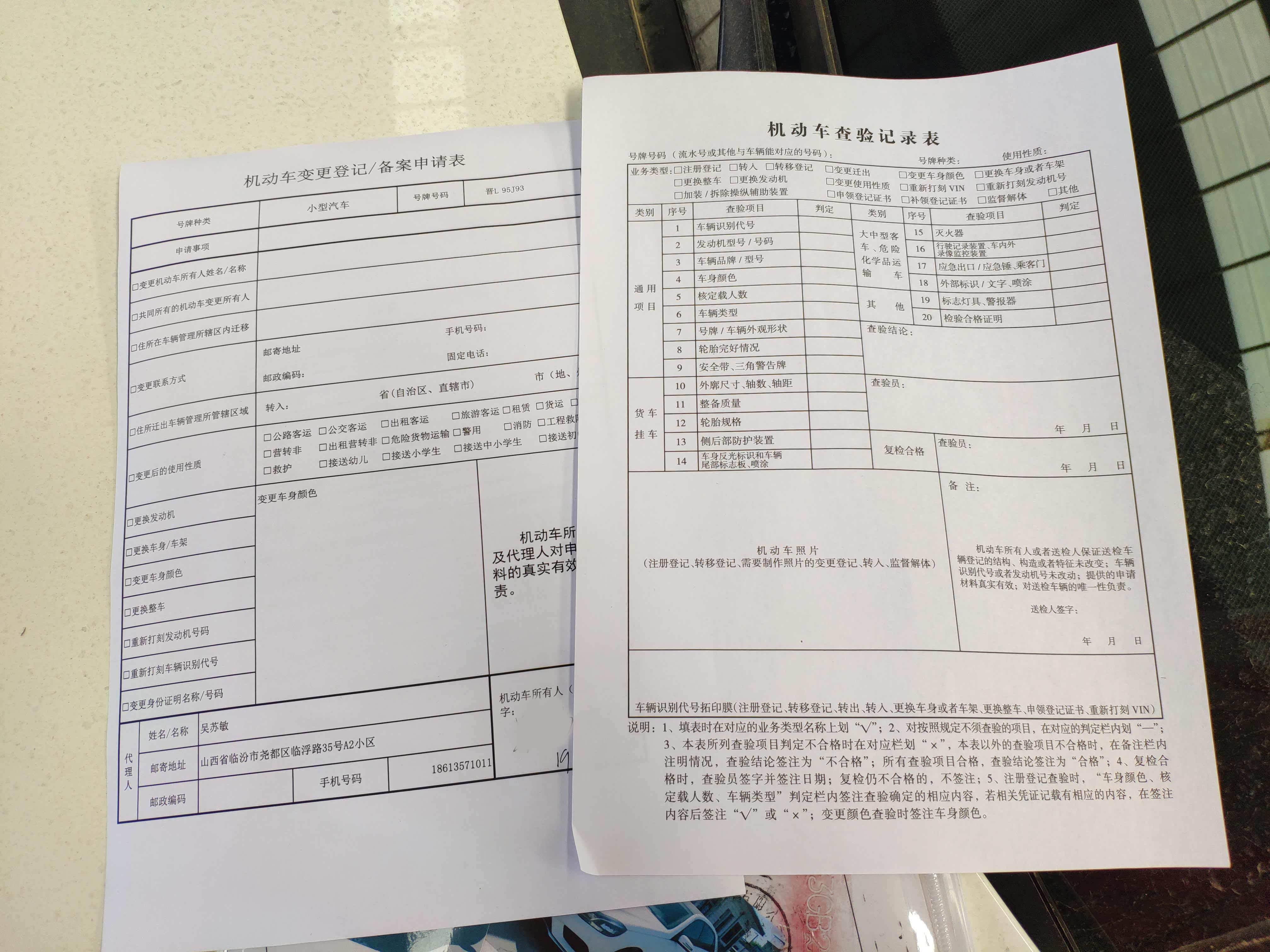 之后跟工作人员索取一张机动车查验表格,把拓号和照片贴在这张表格上相应的位置,在交验人处签字,然后拿着这些资料去业务大厅档案处核档。