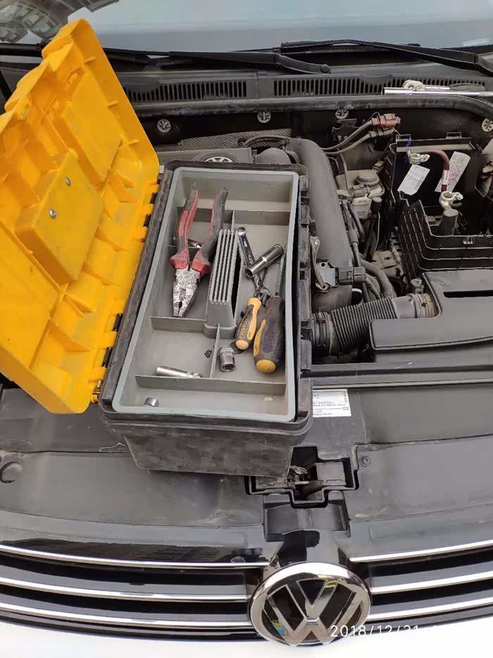 速腾已经开了2年4个月,前几天天气冷已经产生电瓶坏掉的征兆,以为不会彻底坏的,结果今天早晨打火无法启动,仪表液晶屏闪烁,一看电瓶坏了,马上就订购了一块,下午安装时师傅带着电瓶归来更换了,