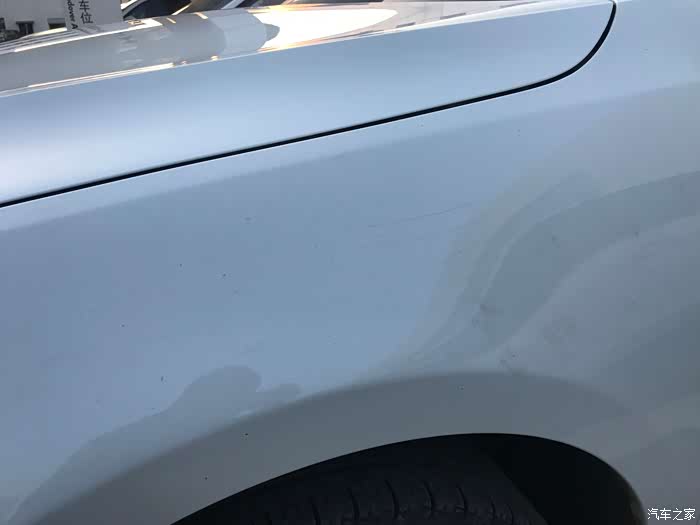 左上角轮眉那里有个刮痕,4S店问要不要一起做了,我说还是算了吧,要自己多出一个油漆钱,省一点是一点