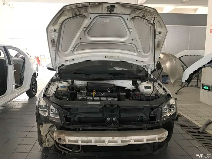 这个是周日下午到4S店拍的,保险杠油漆做好了还没装上去,引擎盖的已经安装完毕