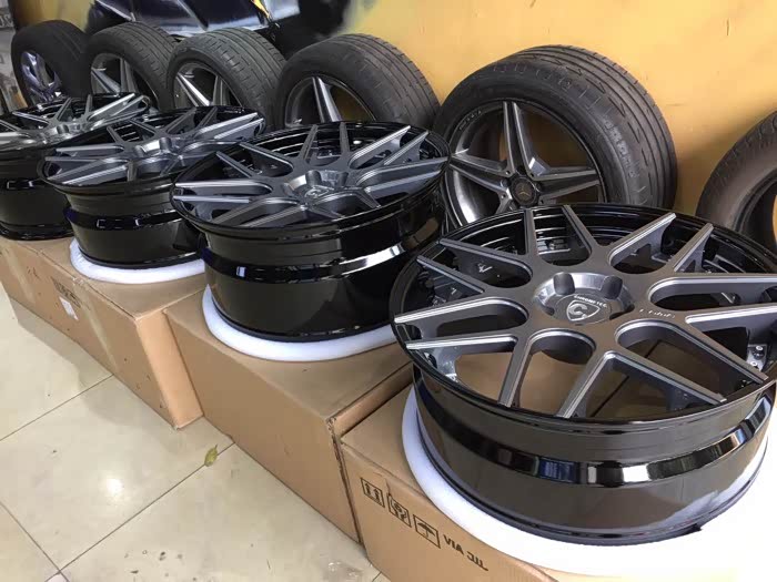 轮毂终于到了,LOMA两片式锻造,前20寸8.5j 后20寸9.5j。