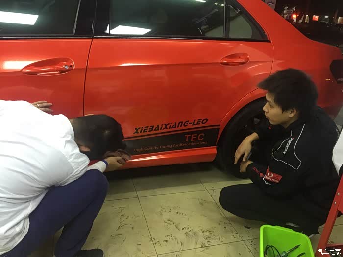 接上,原车的尾嘴配AMG包围实在看不下去,马不停蹄的来到东莞FDR飞龙排气厂改排气。第一次升高看仔细底盘,还是挺整洁的,前任车主用车应该靠谱。