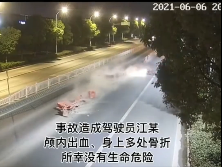 经医院诊断,驾驶人江某颅内出血,身上多处骨折,无生命危险。