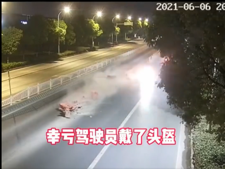 民警介绍,所幸驾驶人佩戴了安全头盔,有效的减少了撞击对头部的伤害,避免了更大悲剧发生。