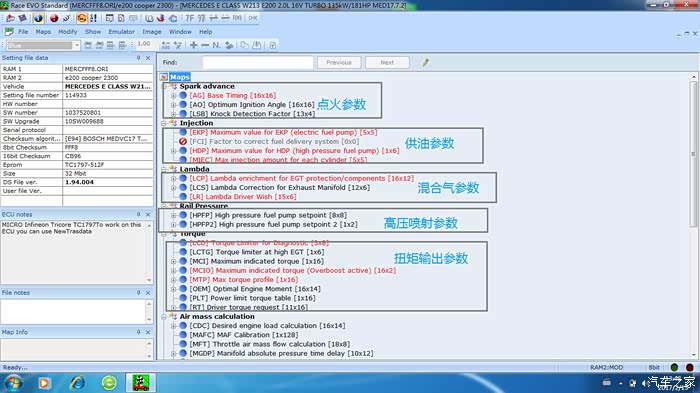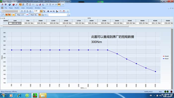 此车车主调校主要目标就是将动力调成与E300相当,要求不改硬件而且发动机工作要求安全稳定。保守调!