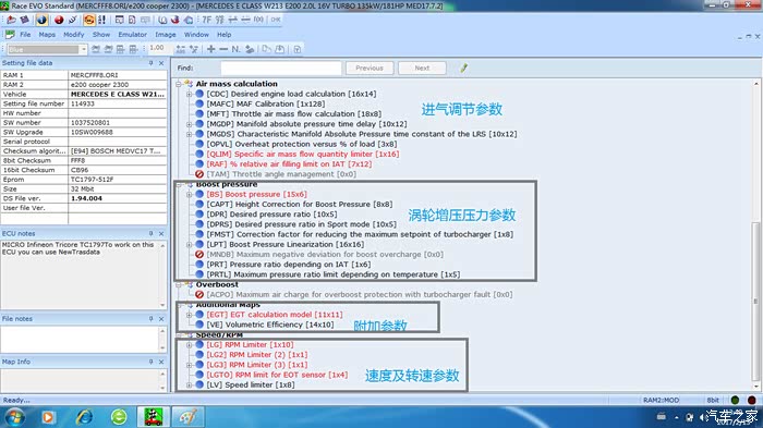 动力调校所做的工作就是将这各个区域的参数做优化,解除相关限制。