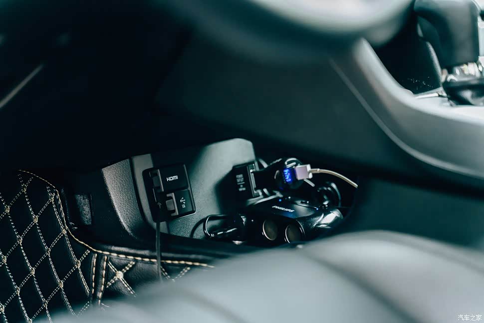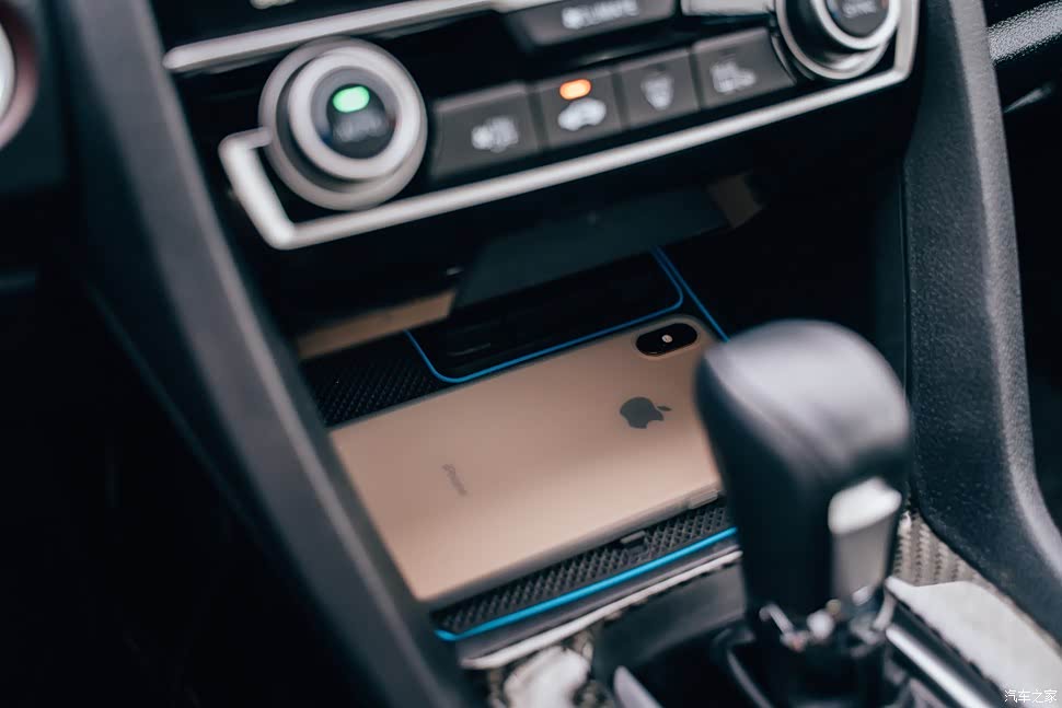 中控下方就,刚好可以放一台iPhoneMax机型,下方也开一个槽,把usb、hdmi、12v点烟器插座都隐藏在下方,并且贴心的在上面的槽位开一个口,方便从下面接usb线上来下面可以轻松放下一个手提包,也可以像我这样放一些线缆等中央扶手箱相比较其他品牌,可以用深不见底来形容?
