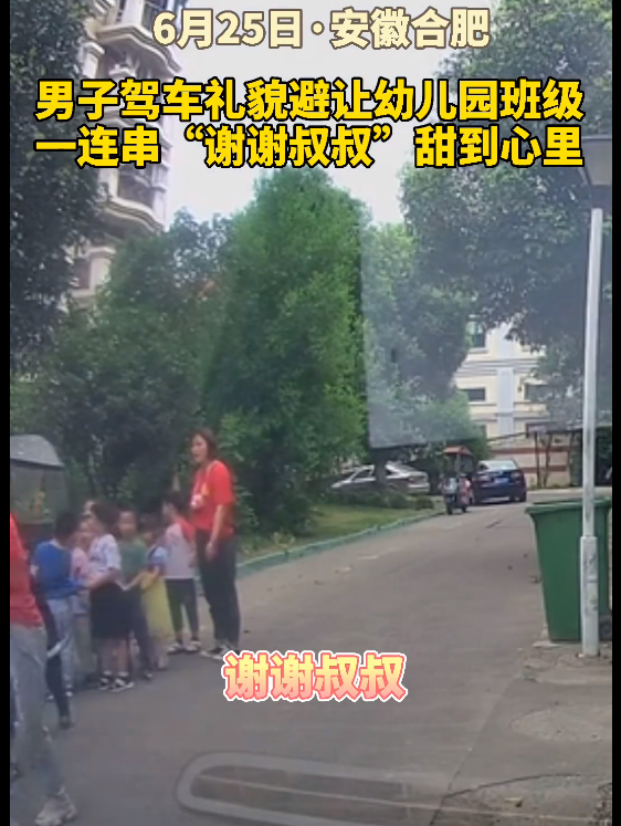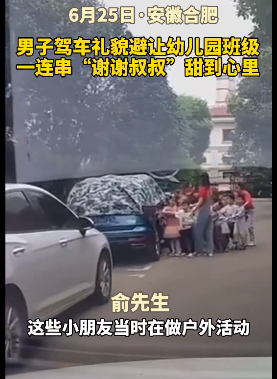 6月25日,安徽合肥一男子俞先生开车路遇一群孩子,便将车停在路旁让路。