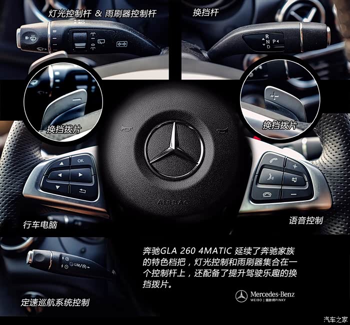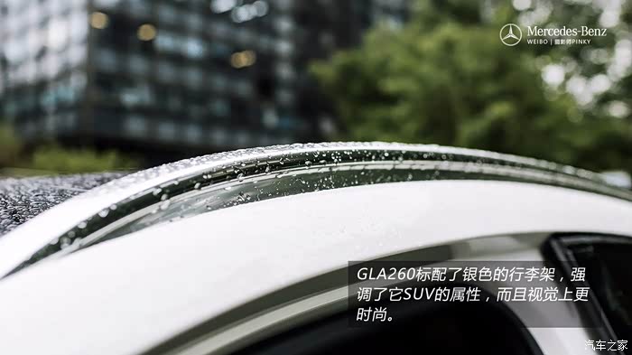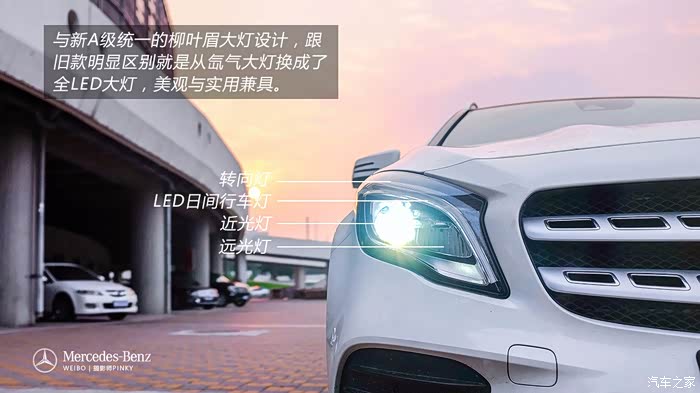 对奔驰品牌的喜欢也是最近几年才有的,年轻的时候喜欢BMW,对奔驰的印象就是老气,大概是源于那时S级的外观设计,似乎都是一些大腹便便出入酒局的大老板们的选择,于是和我这种文艺女青年就绝缘,随着年龄的增长,对BMW渐渐冷淡了,最近几年奔驰的设计明显前卫了许多,尤其是C级和A级,改观了我对三叉星的印象。在GLA传出即将进入中国市场消息的时候,我就被这款SUV吸引了视线,流线型的前卫设计,散发高级感的内饰质感,充沛澎湃的动力...反正,怎么看怎么喜欢。我身边喜欢它的也不止我一个人,“霹雳贝贝”也是它的粉丝,当初还相约等上市了之后一起团购换车。你不要跟我说你不知道“霹雳贝贝”,那个在童年时期充斥电视屏幕搓搓手就可以有带电超能力与外星人沟通的虎头虎脑的小男孩,呀,这么说是不是特别暴露年龄。当然,他现在已经是个大叔了。后来,盼了太久太久,他因为等不及而换了B级,而我,因为买了房就…...算了,说多了都是眼泪。但是,这回汽车之家给了我机会,让我试驾了这款梦寐以求的奔驰GLA2604MATIC。
