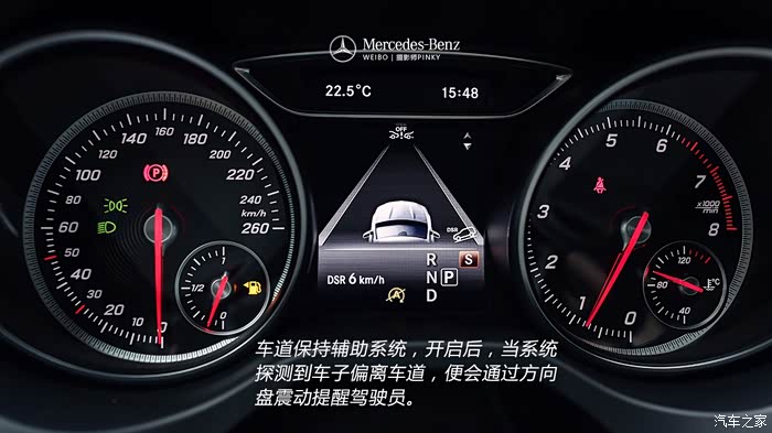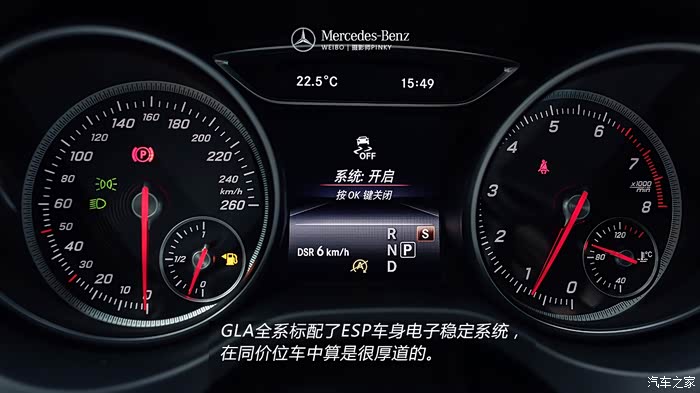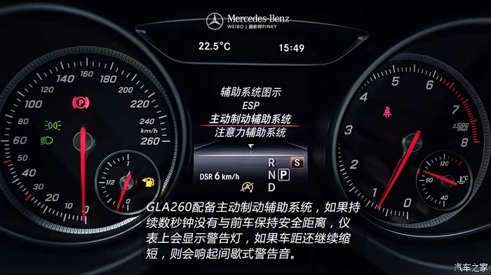 在安全性上,奔驰GLA 220和GLA 260系列上才配备了陡坡缓降功能,以及主动制动辅助功能,当车子持续数秒没有与前车保持安全距离,仪表上会显示警告灯,距离如果持续缩短,就会响起间歇式警告音。刚开始开车时候距离旁边物体近了就会听到雷达叫,但是液晶屏没有看到任何显示,于是内心就有点儿忐忑,不知道距离有多近,后来发现了前风挡下方的雷达探测距离的指示灯,是从黄渐变到红色的指示灯,后面的指示灯在后备箱顶部,可以通过内后视镜观察。