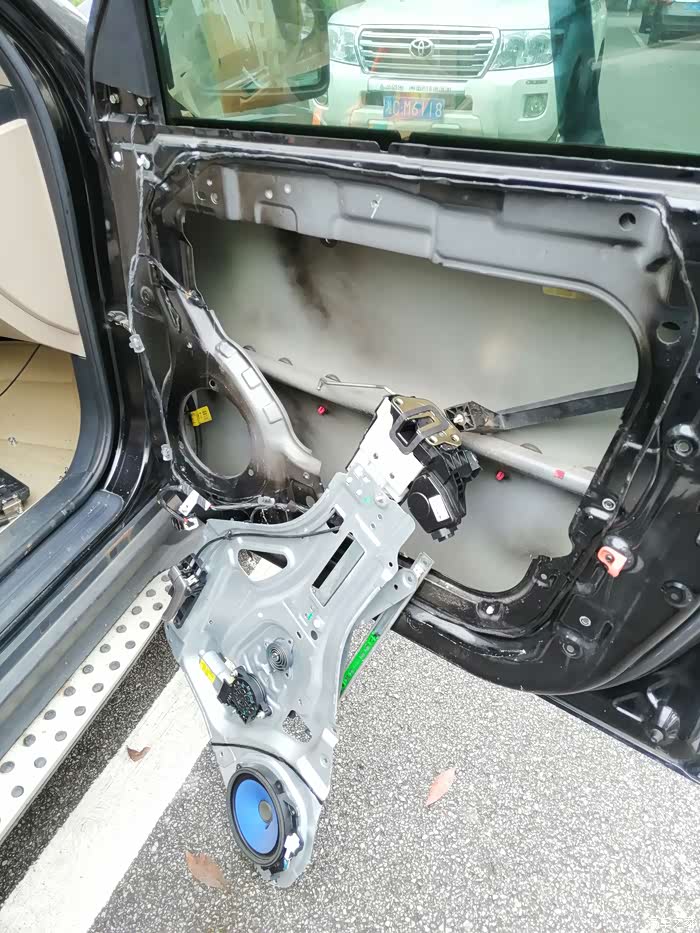 取下车门内饰板,取的时候要小心,主要是卡扣卡的,不要弄断了。把下面用弯头撬棍撬起后,往上提就能拿下来了。