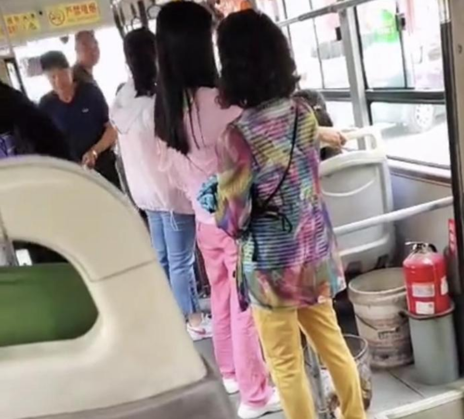 这位母亲穿着粉色上衣,年纪很小,带来的孩子符合购票标准。然而,这位女士上车后,自己买了票,然后带着孩子回去了。司机看到这种情况后迅速将其拦下。司机让女人买票,但是女人没有理会司机。司机又对女人说:“坐公交车要花钱。”